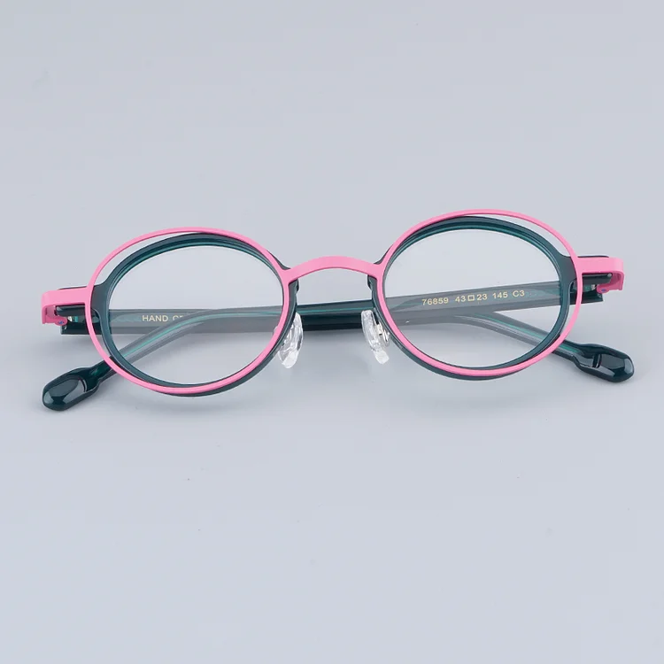 Japanese Round Style Titanium Acetate Eyeglasses Frames Pink High Quality Men Glasses Women Eyewear